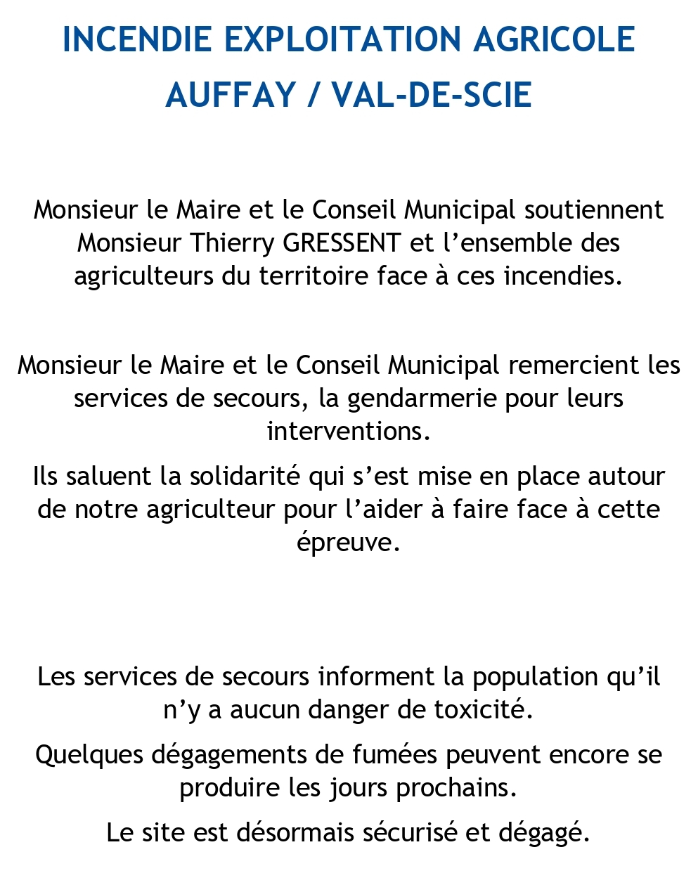 Incendie à Auffay | Soutien aux agriculteurs